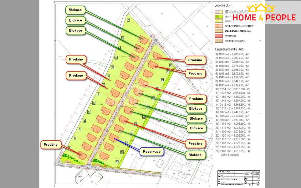 Zprostředkujeme Vám výstavbu domu na klíč typ Fresh 4+kk, 100 m² na pozemku (č. 16) o velikosti 997 m² v Bořenovicích okr. Kroměříž. Bungalov Fresh je typ rodinného domu vhodný do rovinatého, ale i mírně svažitého terénu. Součásti uvedené ceny, která již zahrnuje DPH je dům na klíč, inženýrské sítě mimo plynu, příjezdová i obslužná komunikace, veřejné osvětlení, chodník, centrální čistička odpadních vod, pozemek a veškeré projektové práce a stavební povolení. Přípojná místa jsou vyvedena na pozemku. Pozemek (číslo 16) je mírně svažitý na klidném místě obce. Šíře pozemku je 20,5 m. Dle územního plánu je pozemek veden a schválen pro rodinné bydlení a projekt byl schválen zastupitelstvem obce. Zastavěná plocha domu je 100 m² s užitnou plochou 80 m². Jedná se o zděnou stavbu a nabízí se ve variantě na klíč. Topení je řešeno nízkonákladovým teplovodním podlahovým topením, tepelné čerpadlo se zásobníkem na teplou vodu 180l. Možnost změnit na jiný typ vytápění s doplatkem dle výběru. Uvedená cena domu obsahuje základovou desku, DPH a stavba bude provedena na klíč a předána po kolaudaci k okamžitému užívání. (Součástí ceny není kuchyňská linka a světla – dokážeme za zvýhodněných podmínek zajistit přes naše dodavatele). Možnost změny stavebního materiálu na dřevostavbu s doplatkem nebo přistavit garáž přímo spojenou s domem. Délka výstavby od vydání stavebního povolení 12-13 měsíců u dřevostavby a 11-12 měsíců. Na lokalitě právě se realizuje již 6 stavba. Obec Bořenovice se nachází v okrese Kroměříž ve Zlínském kraji, zhruba 3,5 km od Holešova, 28 km od Kroměříže a 10 km k dálnici D55. Žije zde cca 210 obyvatel. Základní školu děti navštěvují v sousedním městě Holešov. V obci plné pokrytí signálu LTE, dostupný internet i satelitní vysílání. V obci je obchod se smíšeným zbožím, zajištěna autobusová doprava do Holešova. Omezený počet pozemků pro prodej v tomto roce. Doporučuji prohlídku a to jak samotného pozemku, tak našich rozestavěných domů v okolí. ZTV Bořenovice najdete na webu H4P v sekci developerské projekty. Ev. číslo: 29323.