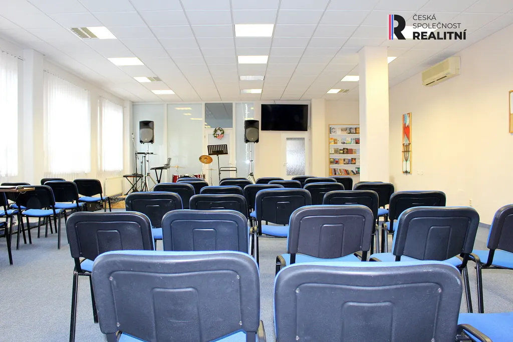 Představuji vám kancelářské prostory v 1. poschodí moderního domu na Sokolovské ul. v Karlových Varech. Celková výměra prostor činí celkem 270 m2. Jedná se o celé jedno patro, které je členěno do jednotlivých kanceláří ( v domě jsou prostory pronajímány po patrech ) Jedna z kanceláří je koncipována jako velká jednací místnost, jako jeden otevřený prostor o velikosti 110m2, který pojme větší počet zaměstnanců. Z tohoto prostoru je vstup na venkovní terasu o velikosti 90 m2 která je k dispozici k užívání. Další jednotlivé kanceláře jsou o velikosti 20 m2, 20 m2, 24 m2, 14 m2, 22 m2, 30 m2, kuchyňka 5,5 m2, WC muži 6 m2, WC ženy se sprchou 3 m2 a chodba 15,20 m2. Vytápění celého patra je plynovým kotlem.