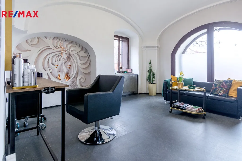 Architektonicky hodnotná budova je postavena na pozemku o celkové výměře 407 m². Dispoziční řešení domu nabízí aktuálně v přízemí 2 komerční prostory s výlohou a přímým vstupem z ulice o podlahové ploše celkem 178 m², včetně kompletního sociálního zázemí. Jeden prostor je provozován jako kadeřnictví, druhý poté slouží jako kanceláře.