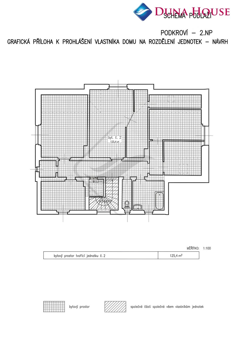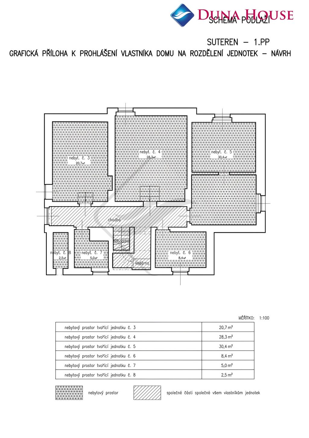 Obsahuje dva samostatné byty 4+1 o rozloze každý 130 m² + suterén.
