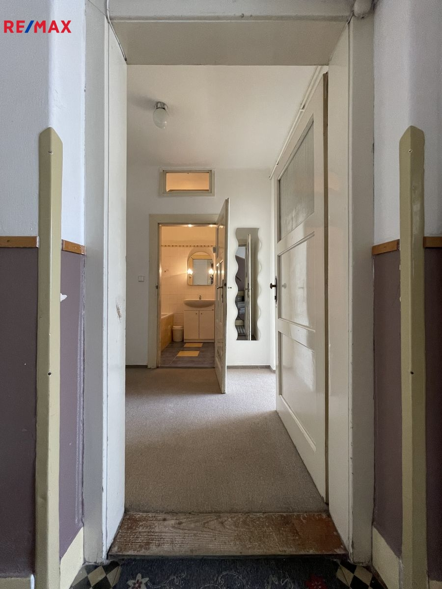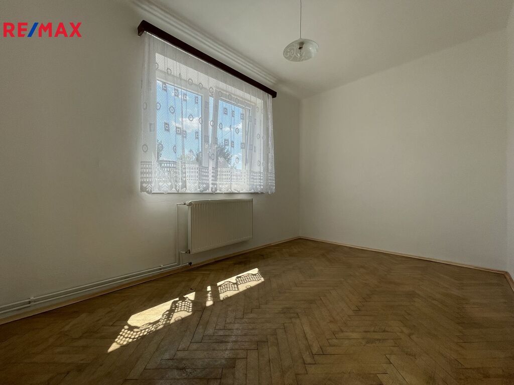 Exkluzivně nabízíme prodej spoluvlastnického podílu ve výši 1/2 na RD, který zahrnuje byt 3+1 (82 m²) v 1.NP, vlastní garáž, společné užívání zahrady a dvorku (cca 105 m²), společné půdní a sklepní prostory. Na pozemek RD se vstupuje brankou na zahradu s dvorkem či z druhé strany vjezdem ke garáži (20 m² z roku 2016). Při vstupu do domu se nacházíte na společné chodbě, odkud vedou vstupy do předmětného bytu, sklepních prostor či schody do patra, kde se nachází balkón ve společném užívání a dále lze pokračovat do půdních prostor. V předmětném bytě rekonstruovaném v roce 2005 (elektřina, voda, odpady) se nachází vstupní předsíň (4,7 m²), 3 neprůchozí pokoje (24 m²; 18,5 m²; 10,7 m²), kuchyň (13 m²) se spíží (1 m²) a průchodem do jednoho z pokojů (2,4 m²), koupelna (4,2 m²) s vanou (stáří 2 roky) a samostatné WC (1 m²). V bytě jsou plastová okna z roku 2016. Dům je napojen na obecní vodovod, kanalizaci, el. a plyn. Elektřina v bytě je v mědi. Krytina střechy je pokryta eternitem. Byt má zajištěný ohřev tepla i vody plynovým kombinovaným kotlem umístěným v koupelně bytu. Podlaha obytných pokojů je pokryta parketami, v kuchyni je kombinace PVC a koberce, v koupelně a WC je dlažba, ve vstupní předsíni je koberec. Nemovitost bude v budoucnu vyžadovat rekonstrukci střechy a hydroizolaci domu. Zajistíme Vám konzultaci možné koupě této nemovitosti – bezplatně s našim finančním poradcem. Více fotografií na stránkách RE/MAX. Bližší informace u makléře nabídky.