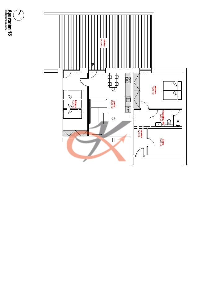 Apartmánová jednotka 233/1 – 3+kk se nachází v 1.PP v rezortu Pohoda na Horní Bečvě. Celková výměra je 87,99m2 a sestává se z pokoje 1 - výměra 18,7m2, pokoje 2 - výměra 17,1m2, pokoje s kuchyní výměra 29,2m2, koupelny s toaletou 5,89m2, technické místnosti - výměra 10,1m2, z obývacího pokoje a obou dalších pokojů je vstup venkovní terasu o ploše 60m2 . Apartmán je orientován na západní stranu. K dispozici jsou dvě parkovací stání 2x 12,5m2. Rezort se nachází v malebném prostředí Horní Bečvy s výhledem na vodní nádrž a v dostupnosti několika sjezdovek, SKI areálů a cyklostezek. Turisticky atraktivní místo je vedle lomu s vyhlídkou s úchvatnými pohledy do okolní krajiny, odpočinkovými altány jen 8km od Pusteven. Každá bytová jednotka má vlastní ohřev vody, vlastní měřiče energií, podlahové vytápění, vinylové podlahy, koupelna a WC RAKO. Ve společných prostorách je dobíjecí stanice na elektrokola, prostor pro uskladnění lyží a několik společenských místností. Vhodné k trvalému bydlení, k rekreaci i jako investice k pronájmu.