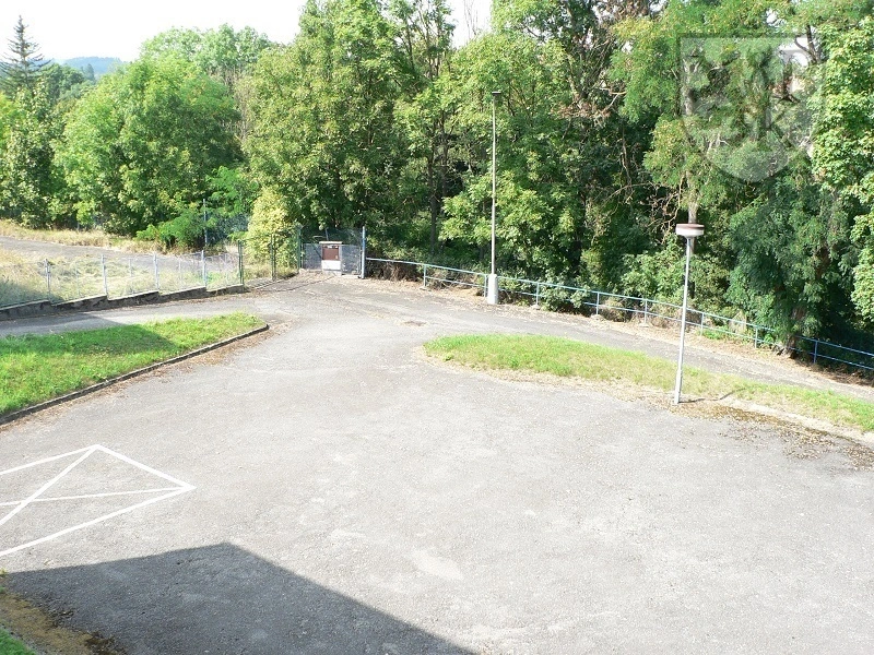 Pozemek: Celkem 5346 m2 včetně zastavěné plochy, kolem budovy. Z toho asi 1000 m2 připadá na vyasfaltované parkoviště před budovou, asi 1500 m2 na vlastní příjezdovou komunikaci, zbytek převážně zatravněný.
