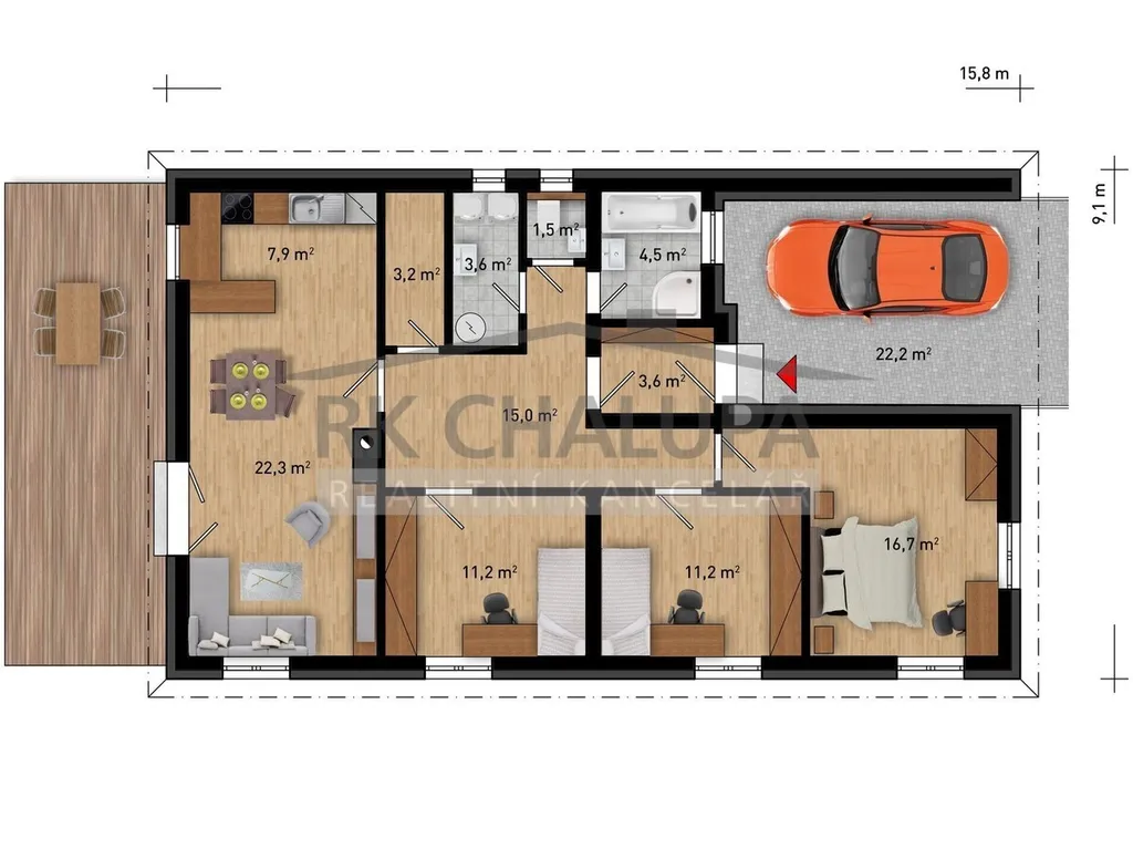 Nabízíme realizaci výstavby zděného domu, bungalovu, en. třída B, na vašem pozemku, v lokalitě České Budějovice a okolí do cca 20 km. Dům o dispozici 4+kk (lze zvětšit na 5+kk) o zastavěné ploše 147 m2, tj. vstup do zádveří, za kterým je situována komunikační chodba se vstupy do jednotlivých místností: jídelna, kuchyně se spíží, obývací pokoj, ložnice, dětské pokoje, koupelna, WC, technická místnost. V obývacím pokoji komín pro krb, francouzské okno umožňující pohodlný vstup na terasu, případně na zahradu. V chodbě je výlez na půdu, k úložnému prostoru, pochozí stav. Okna v provedení trojsklo. Součástí ceny i kompletní projektová dokumentace, vyřízení st. povolení a ohlášení. Cena bez pozemku. Domy předáváme po řádné kolaudaci - souhlasu s užíváním. V případě topného systému elektrokotlem sleva 30.000 Kč. Vyztužení vazníků na fotovoltaiku možné. Zajistíme Vám prezentaci typových domů. Zrealizujeme i Váš individuální projekt. Videoprohlídky zhlédnete na našich webových stránkách.