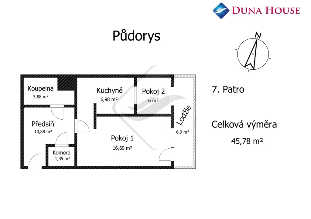 Byt disponuje velkou předsíní s komorou, dále koupelnou s WC. V bytě dále nalezneme velký obývací pokoj, průchozí vybavenou kuchyni a samostatný malý pokoj, do kterého se přes tuto kuchyni vchází. Obývací pokoj a kuchyně jsou odděleny příčkou. K bytu dále náleží velká lodžie a sklep. Teplá voda i topení je zajištěno ústředním dálkovým vytápěním. Byt je v současné době pronajat s možností převzetí nájemní smlouvy. Tuto smlouvu lze také ukončit s tříměsíční výpovědní lhůtou. Byt se nachází v poměrně dobrém stavu, běžné opotřebení je ale znát.