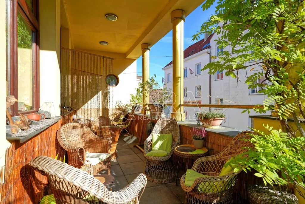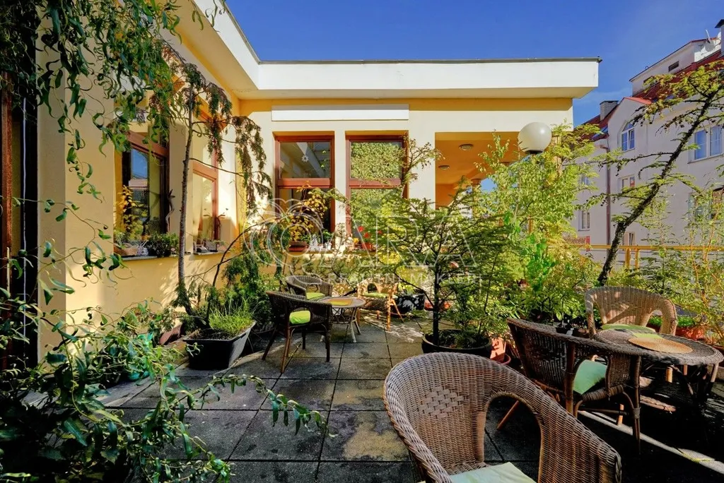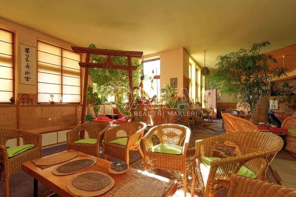 Dům je rozdělen na dvě části. V prvním vchodu se nachází restaurace s potravinami v přízemí. Nad ní je vyhlášená a skvěle hodnocená tradiční čajovna s velkou terasou. V posledním patře je 62 m² byt 2+kk a půda. Ve druhém vchodu je music bar v suterénu, pole gym a 41 m² byt v přízemí. V prvním patře je velký sál s točitým schodištěm do druhého patra s učební a zázemím. Ve druhém patře je i 90 m² byt s dispozicí 3+1. Celkově se jedná přibližně o 1.000 m² s velmi zajímavým uspořádáním.