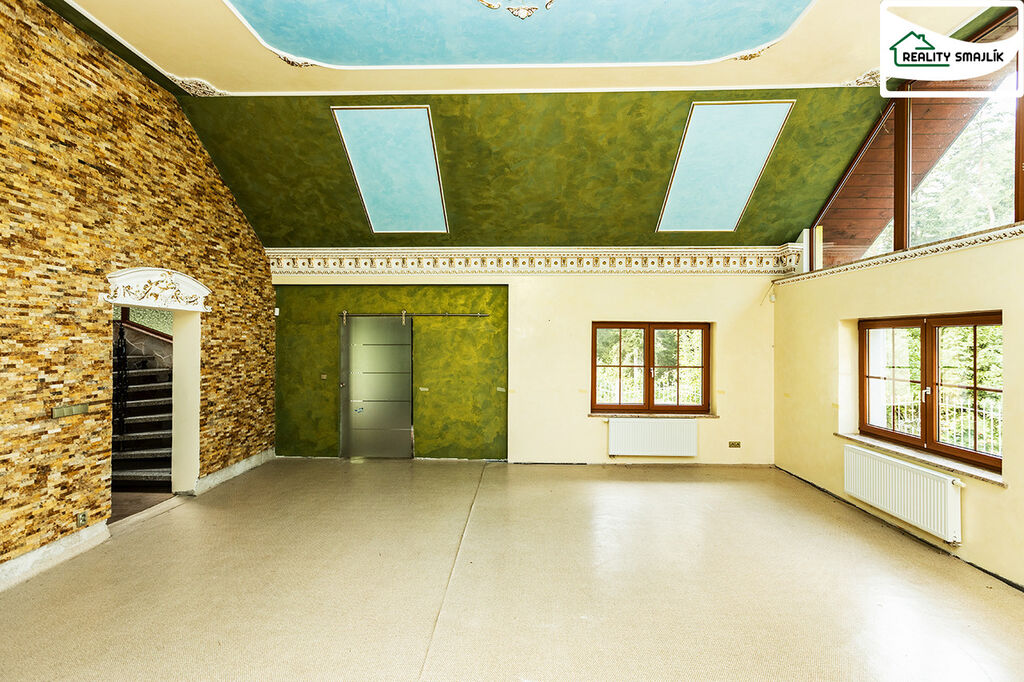 Reality Smajlík s.r.o. exkluzivně zajisťuje: Prodej luxusního rodinného domu se čtyř garáží, vedlejší stavbou, venkovním posezením se zahradou nabízející úplné soukromí v obci Plesná, okres Cheb. Celková výměra pozemku je 1839 m2. Jedná se o velmi kvalitní zpracování, naleznete zde prvky z mramoru, kamene i dřeva. Výmalba jsou kvalitní štuky. V přízemí domu jsou prostorné místnosti, kuchyň, koupelna, v horním patře jsou pak ložnice. Vytápění je centrální (kotel na tuhá paliva nebo plynový kotel), podlahové. Objekt je podsklepený (lze plnohodnotně využívat -sprchový kout, WC), napojen na elektřinu, plyn. Voda je z vlastního vrtu, odpadové vody jsou řešeny do jímky. Nelze opomenout zabezpečovací zařízení vč. hlídací agentury. Zděný plot, el. otvírací brána zajišťuje komfortní vjezd, garáž pro 4 auta s el.vraty a možností vytápění, pohodlné parkování. Doporučuji klientům, hledající naprosté soukromí, možnost vycházek do lesa, blízkosti hraničního přechodu do sousedního Bad Brambachu. Vhodné k bydlení, rekreaci i podnikání. Bližší informace v RK.