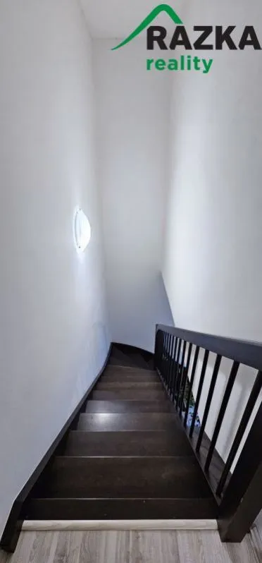 Dispozice: V 1.NP se nachází vstupní chodba, samostatné WC, obývací pokoj s kuchyní a vstupem na terasu, schodiště. Ve 2.NP se nachází dvě ložnice, chodba a koupelna s WC. Dále je součástí venkovní sklepní kóje. Zahrada, která je součástí prodeje má výměru 137 m2.