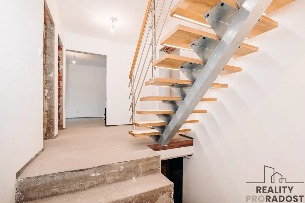 stylově podsvícené schodiště do podkroví