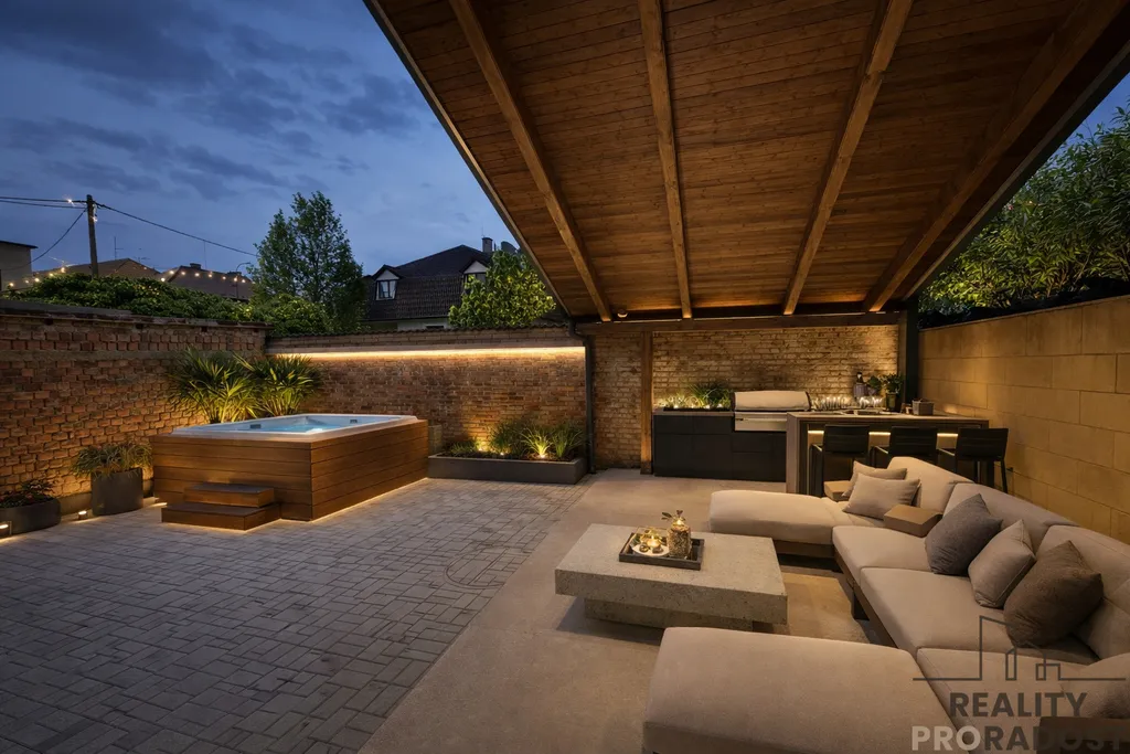 díky francouzskému oknu propojení se zastřešenou terasou – ideální pro ranní kávu i večerní posezení