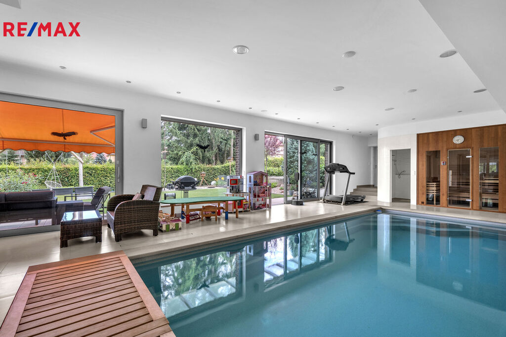 Nabízíme k prodeji luxusní rodinný dům s vnitřním bazénem a trojgaráží po celkové rekonstrukci, který se nachází v centru Trutnova v ulici Dělnická. Velkorysé a náročné stavební úpravy citlivě respektovaly atmosféru objektu s prvky prvorepublikové architektury a veškeré práce byly provedeny s maximální pečlivostí a citem pro detail, vše za účasti renomované architektonické kanceláře. Nadčasová dispozice domu byla téměř zachována, mezi trojgaráž a stavbu rodinného domu byl vestavěn bazén se saunou, který navazuje přes prosklené dveře přímo na obytný prostor v prvním NP. Bazén je přístupný přímo i ze zahrady velkoformátovými okny. Celková zastavěná plocha objektu je 320 m2 (s bazénem a garáží), užitná podlahová plocha samotného domu 355 m2 (bez bazénové části a garáže). Čtyřpodlažní dům kromě dvou obytných podlaží nabízí ve čtvrtém nadzemním podlaží volnou prostornou půdu vhodnou k případné vestavbě. V prvním nadzemním podlaží v úrovni zahrady je polootevřený prostor denní části tvořený kuchyní s jídelním koutem a spíží, obývacím pokojem, pracovnou, toaletou, technickým zázemím a původním schodištěm. Dále se zde nachází bazén, vířivka a sauna s ochlazovnou. Ve druhém nadzemním podlaží se nacházejí tři prostorné místnosti, z nichž dvě mají východ na balkon lemující jihozápadní část domovní fasády a dvě luxusní koupelny. Jedna z koupelen s vanou i sprchovým koutem je přístupná přímo z ložnice rodičů, v této místnosti se nezapomnělo ani na praktickou šatnu. Foto z místností ve druhém nadzemním podlaží z důvodu zachování soukromí majitele v inzerci chybí. Při rekonstrukci bylo dosaženo energetické náročnosti objektu třídy „B“. Pečlivě založená a udržovaná zahrada s menším dětským hřištěm a prostorem na grilování, perfektní oslunění rodinného domu a přístupové cesty s možností vytápění v zimních měsících podtrhují atraktivnost nabídky. Klidné místo v zástavbě rodinných a menších bytových domů poskytuje všechny výhody bezprostřední blízkosti centra města s maximální občanskou vybaveností. Více informací k výjimečné nabídce pro náročné klienty a k možnostem financování sdělí realitní kancelář na telefonním čísle 739 486 402.