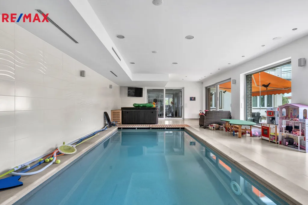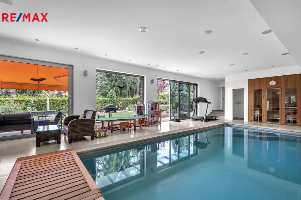 Nabízíme k prodeji luxusní rodinný dům s vnitřním bazénem a trojgaráží po celkové rekonstrukci, který se nachází v centru Trutnova v ulici Dělnická. Velkorysé a náročné stavební úpravy citlivě respektovaly atmosféru objektu s prvky prvorepublikové architektury a veškeré práce byly provedeny s maximální pečlivostí a citem pro detail, vše za účasti renomované architektonické kanceláře. Nadčasová dispozice domu byla téměř zachována, mezi trojgaráž a stavbu rodinného domu byl vestavěn bazén se saunou, který navazuje přes prosklené dveře přímo na obytný prostor v prvním NP. Bazén je přístupný přímo i ze zahrady velkoformátovými okny. Celková zastavěná plocha objektu je 320 m2 (s bazénem a garáží), užitná podlahová plocha samotného domu 355 m2 (bez bazénové části a garáže). Čtyřpodlažní dům kromě dvou obytných podlaží nabízí v prvním podzemním podlaží rovněž kompletně zrekonstruované prostory sloužící k podnikání se samostatným přístupem, nyní jsou zde tři samostatná studia se zázemím, která jsou pronajímána, ve čtvrtém nadzemním podlaží je k dispozici prostorná půda vhodná k případné vestavbě. V prvním nadzemním podlaží v úrovni zahrady je polootevřený prostor denní části tvořený kuchyní s jídelním koutem a spíží, obývacím pokojem, pracovnou, toaletou, technickým zázemím a původním schodištěm. Dále se zde nachází bazén, vířivka a sauna s ochlazovnou. Ve druhém nadzemním podlaží se nacházejí tři prostorné místnosti, z nichž dvě mají východ na balkon lemující jihozápadní část domovní fasády a dvě luxusní koupelny. Jedna z koupelen s vanou i sprchovým koutem je přístupná přímo z ložnice rodičů, v této místnosti se nezapomnělo ani na praktickou šatnu. Foto z místností ve druhém nadzemním podlaží z důvodu zachování soukromí majitele v inzerci chybí. Při rekonstrukci bylo dosaženo energetické náročnosti objektu třídy „B“. Pečlivě založená a udržovaná zahrada s menším dětským hřištěm a prostorem na grilování, perfektní oslunění rodinného domu a přístupové cesty s možností vytápění v zimních měsících podtrhují atraktivnost nabídky. Klidné místo v zástavbě rodinných a menších bytových domů poskytuje všechny výhody bezprostřední blízkosti centra města s maximální občanskou vybaveností. Více informací k výjimečné nabídce pro náročné klienty a k možnostem financování sdělí realitní kancelář.