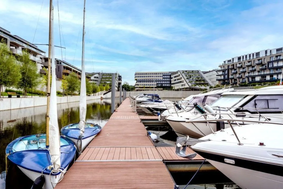 Kanceláře v nejvyšším standardu, jedinečná lokalita u vltavské Mariny, komunitní služby (aplikace, magazín, společenské akce), LEED GOLD certifikace.
