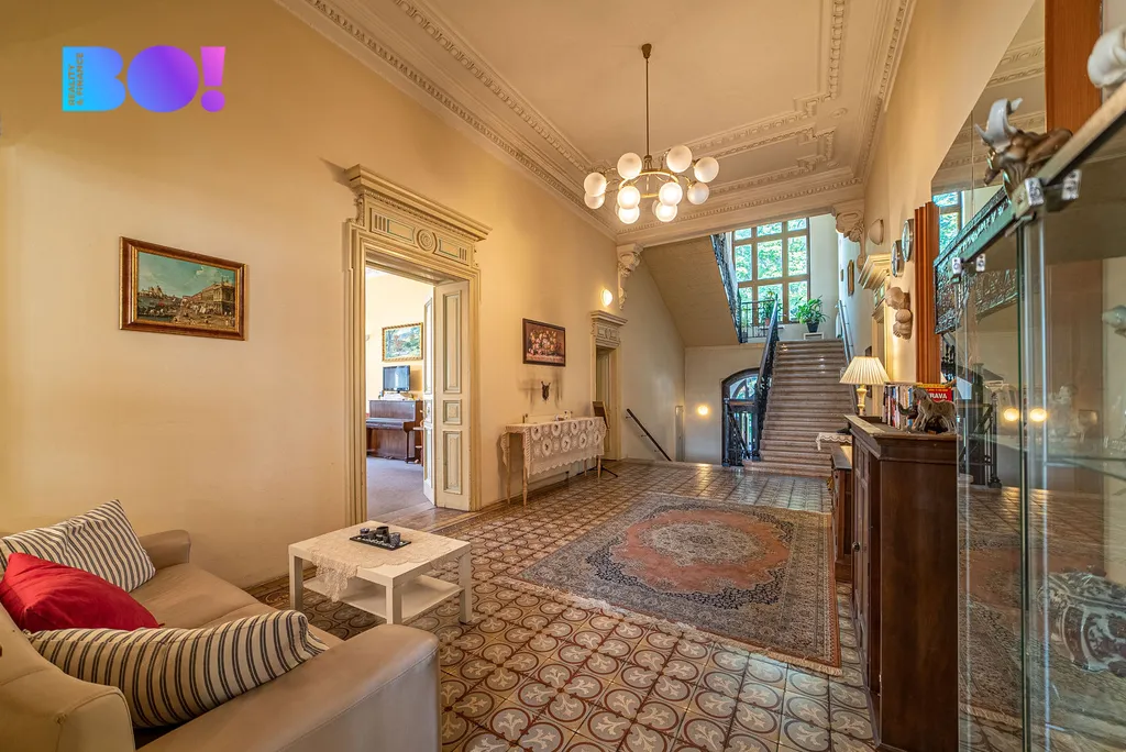 Hlavní schodiště vedoucí do 2. nadzemního podlaží je dalším architektonickým skvostem, který podtrhne ducha této nemovitosti.