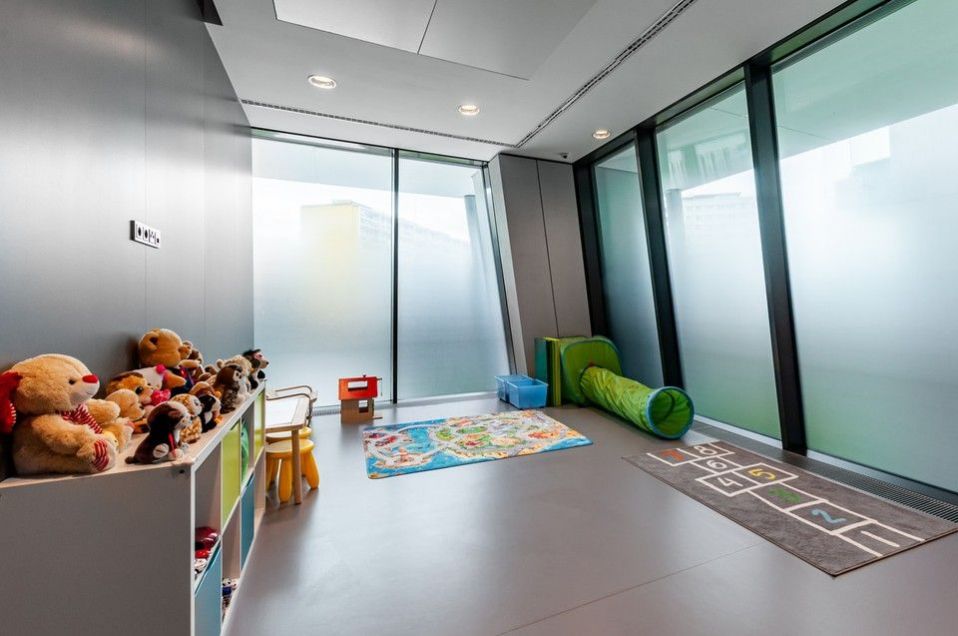 Samozřejmostí pro rezidenty je privátní fitness, sauna, pára a bazén, privátní kino a klubové patro, golfový trenažér pro relaxaci, rychlo-dobíjecí stanice pro elektromobily.