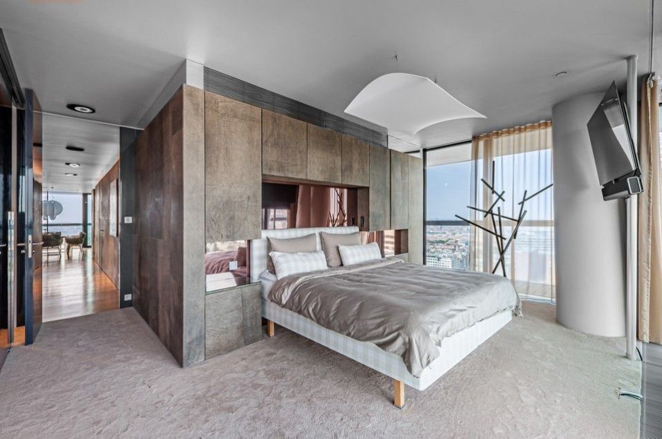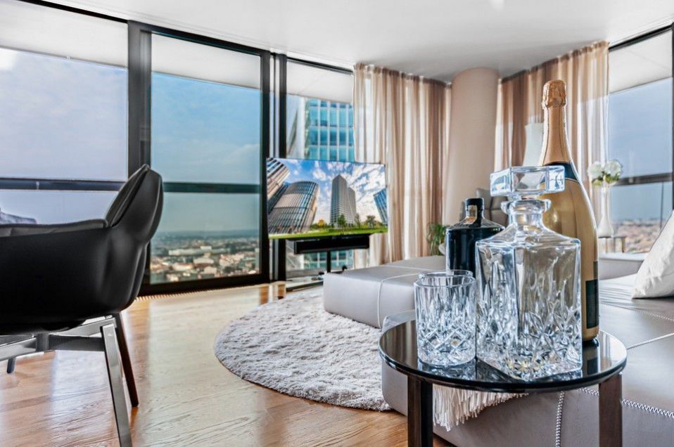 Prodej reprezentativního, luxusního, jihozápadně orientovaného bytu 4+kk (197 m2) s terasou a neopakovatelnými výhledy na Pražský Hrad, lemující celý byt s dvěma parkovacími místy a dvěma sklepy ve 24. podlaží západní věže projektu V Tower, ve třiceti patrovém 104 metrů vysokém mrakodrapu na Pankrácké pláni v Praze 4, severovýchodně od křižovatky ulic Pujmanové a Milevské, na hranici Krče a Nuslí. Budova V Tower v Praze je budova se špičkovými, nadčasovými technologiemi a luxusními materiály a zároveň ukázkovým designem s nadstandardními službami pro ty nejnáročnější rezidenty.