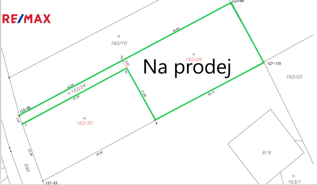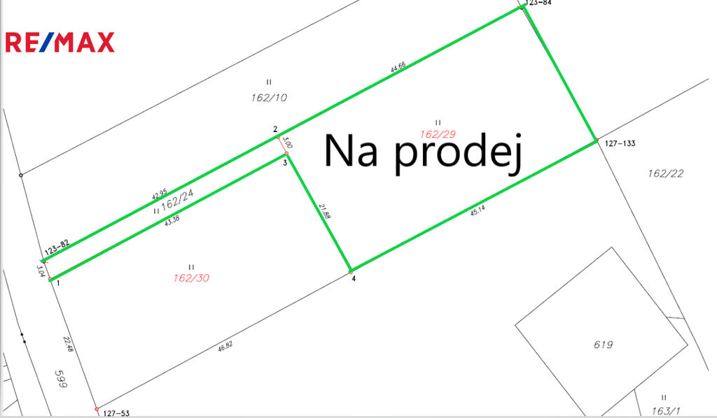 Stavební pozemek je rovinatý, celodenně osluněný, situovaný v klidné části obce u obecní komunikace. Prodává se pozemek č. 162/29 + 1/2 vlastnický podíl pozemku č. 162/24. Přípojky vody a elektřiny jsou přivedeny. Dle územního plánu je na pozemku možno postavit rodinný dům.