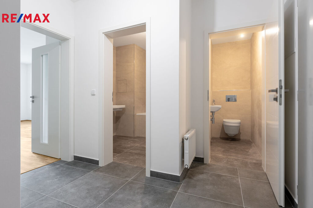 Nabízíme byt 2+KK o celkové ploše 64,7 m2, který se nachází ve 3.NP. Byt disponuje velkou vstupní chodbou s možností umístění vestavných skříní. Stejně jako v ostatních bytech je WC odděleno od koupelny. V přiloženém půdorysu máte možnost si prohlédnout dispozici bytu, která odpovídá všem moderním standardům. Byt je vybaven dřevěnou podlahou a v koupelně a WC velkoformátovou moderní dlažbou. Finální materiály je možno samozřejmě s developerem individuálně řešit.