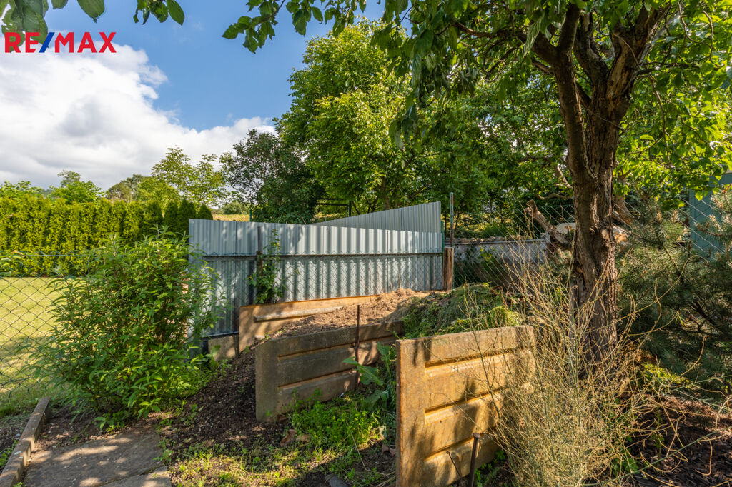 V krajní části zahrady je postaven zděný zahradní domek na úschovu zahradního nábytku či nářadí o velikosti 2 x 2,5 m (z Itongu) pod stálým uzamčením kvalitních plastových dveří. Velkým bonusem této nabídky je již existující základová deska s rozměry 6 x 4 m, která jen čeká na výstavbu zahradní chatky budoucím majitelem. Zde je připraven i vývod vody, elektřiny a odpadu do 200 litrové nádrže. Bez přímé příjezdové komunikace.