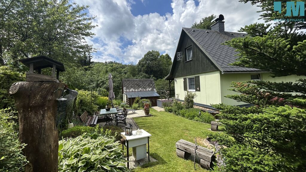 Pozemek o velikosti 1582 m² s terasovitou zahradou, potůčkem a švestkovým sadem.