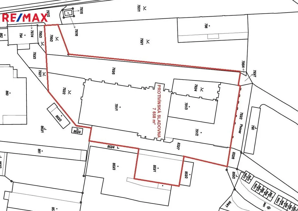 Velikost části areálu, ve kterém se nemovitost nachází, činí 7658 m².