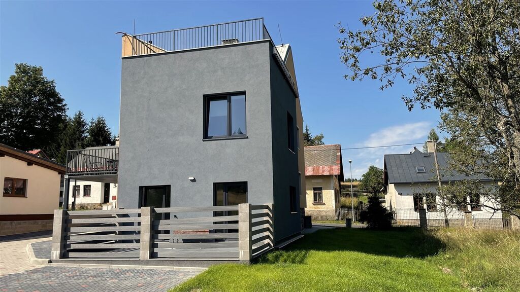 V zastoupení majitele nabízíme příležitost ke koupi nově zbudovaného apartmánu o dispozici 3+KK s terasou a podkrovím ve druhém patře cihlového bytového domu v obci Pernink. V domě vzniklo 5 nových bytových jednotek o dispozici 2+KK a 3+KK. Podlahová plocha bytu je 77,4m2, terasa 24,35m2, podkroví 12m2. Celková užitná plocha tohoto bytu je tudíž 113m2. Příslušenství bytu tvoří zděná sklepní kóje o velikosti 10,53m2 v prvním podzemním podlaží bytového domu se vstupem ze zahrady a domu. Podlahové vytápění elektrokotlem se sníženou sazbou HDO, ohřev vody elektrickým bojlerem. Prohlídky již možné. Vlastní parkovací místo na pozemku u domu. Pokud hledáte apartmánové bydlení v horském městečku nedaleko skiareálů či investici na krátkodobé pronájmy, mohu tuto nemovitost doporučit. Neváhejte nás oslovit a sjednat si prohlídku nabízené nemovitosti. S financováním rádi pomůžeme. Více informací v RK.