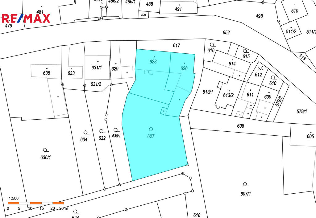 Celková výměra pozemků činí 1417 m² - zahrnuje nejen dům, ale i zahradu s přístupem přes průjezd nebo bránu v zadní části pozemku. Nemovitost je přístupná po místní asfaltové komunikaci, která proběhla rozsáhlou rekonstrukcí. Půdorysnými rozměry a uspořádáním takřka obdélníkového tvaru se nabízí alternativní možnost nemovitost rozdělit mezi dva vlastníky.