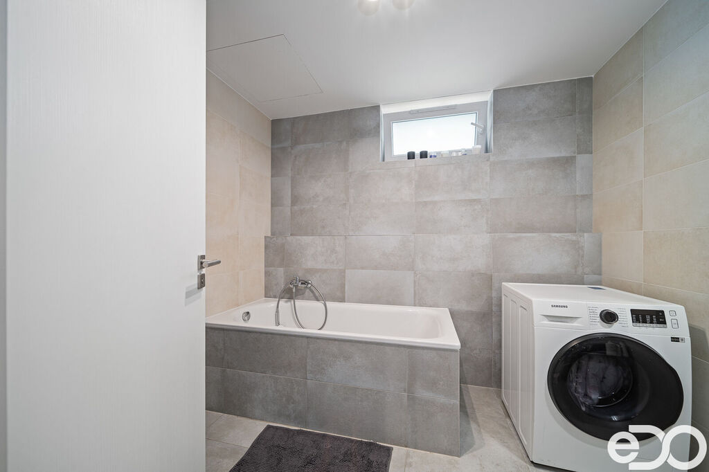 Koupelna je vybavena vanou a nabízí dost místa pro umístění pračky se sušičkou. Velkou výhodou je samostatná šatna, která je přístupná přímo z prostorné chodby.