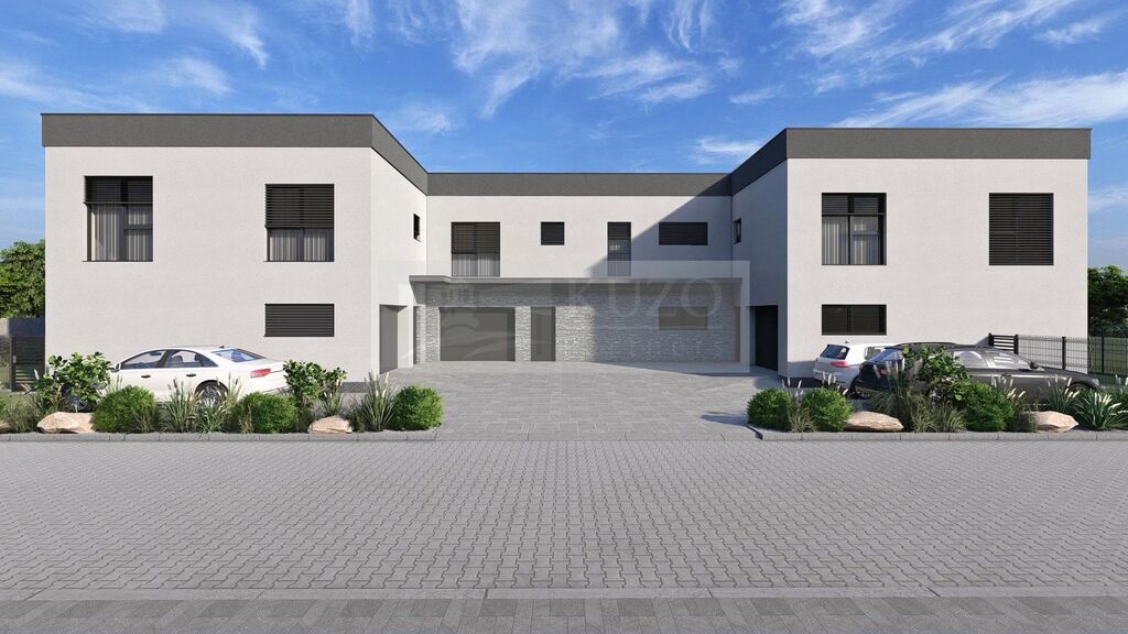 V moderní a prakticky řešené vile, najdete krajní bytovou jednotku o dispozici 5+kk a komfortních 168 m2 vnitřní užitné plochy ve dvou podlažích. Podlahová plocha jednotky je 179 m2. Součástí jednotky je i vlastní garáž a k tomu je před vilou další vyhrazené parkovací stání. V okolí domu si budete užívat privátní rovinatou zahradu o výměře 295 m2, která navazuje na venkovní terasu. Celková výměra pozemku, který náleží k této jednotce je 458 m2.