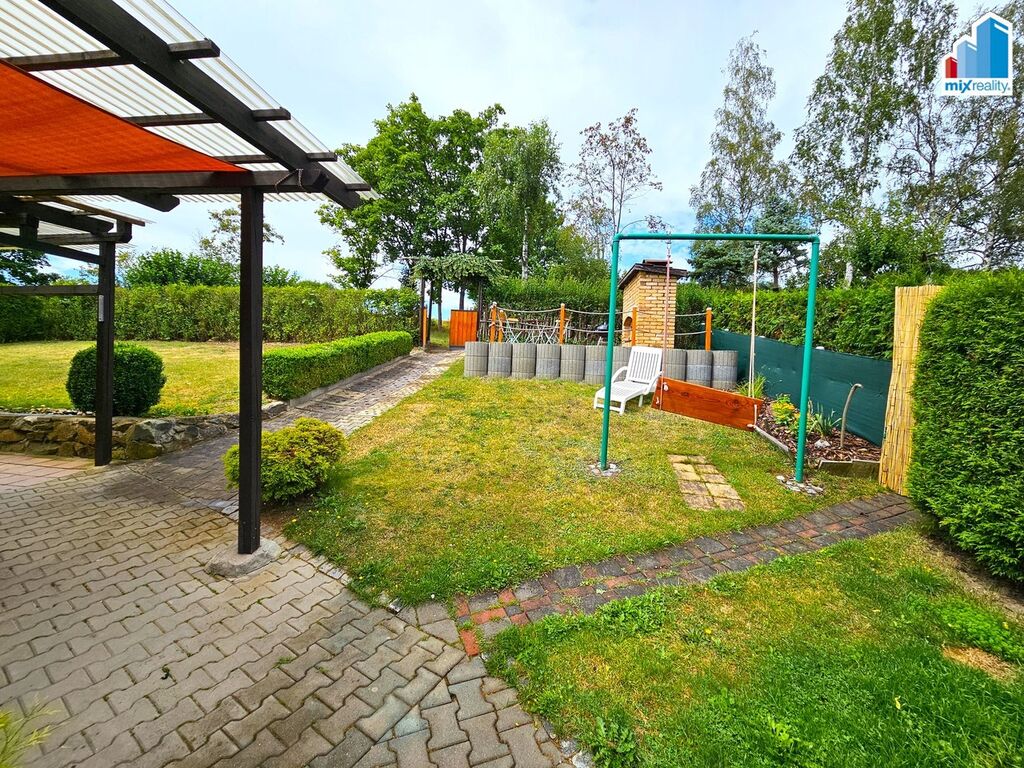 Na pozemku se nachází venkovní posezení s udírnou a grilem, pergola, zahrádka, bazén a parkovací stání.