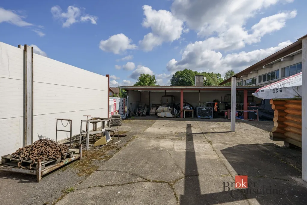 Jedná se o parcely s celkovou plochou cca 2600 m². Jednotlivé části hal a dílčích místností mohou být využívány nebo následně pronajaty v různých oblastech podnikáni: autoservis, automyčka, skladové prostory apod. Haly jsou plně funkční, je možné je ihned využívat a to bez větší počáteční investice. V jedné části se nachází plně vybavená kancelář se zázemím a součástí areálu je i umývárka, kterou lze využívat pro osobní automobily apod. Do komplexu jsou zavedeny veškeré inženýrské sítě a soukromý vjezd z hlavní silnice. Celý pozemek je rovinatý, s mnoha místy na parkování (cca až 50 míst). Jedna z hal je dlouhodobě pronajatá autoservisu - nabízí se tedy investiční příležitost a možnost ponechání pronájmu zavedeného autoservisu.