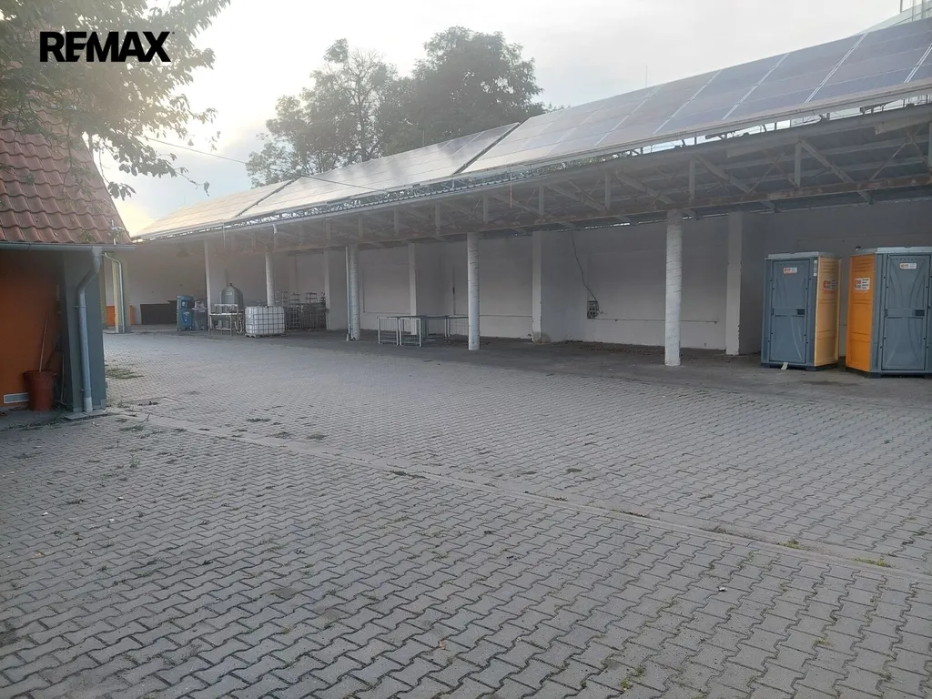 V areálu se nachází přístřešek o výměře přibližne 100 m2, dále uzavřená garáž o výměře cca 100 m2, vhodná např. jako dílna. Jedná se o objekt bývalých stavebnin, tudíž je vhodný např. na parkování aut, skladování materiálu atd. K těmto prostorům náleží zázemí s kanceláří ( vhodné např. jako dispečink) o výměře 35 m2.