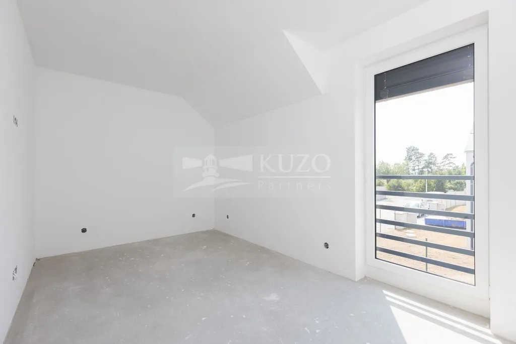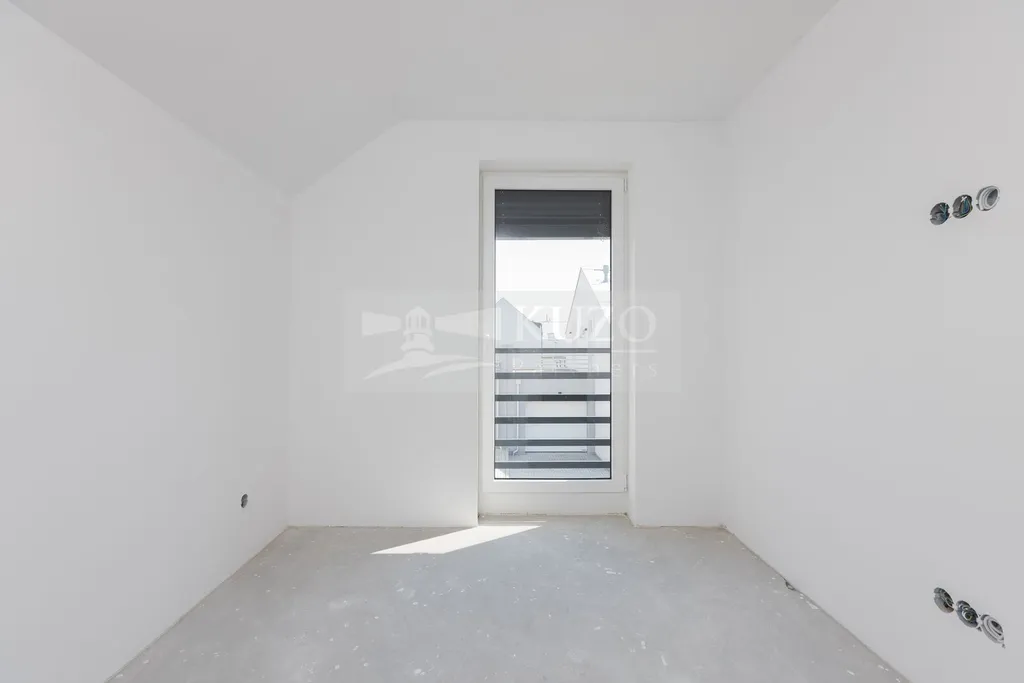 Po schodišti do prvního patra, jsou dva samostatné pokoje 10 m² a 11 m², ložnice 19 m², koupelna s vanou a toaletou, dále navíc prostorná terasa o užitné ploše 29 m².