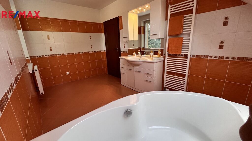 Jedná se o prodej samostatně stojícího rodinného domu v okrajové části obce Bácovice o zast. ploše 102m2 a zahrady 1.608m2 s celkovou plochou pozemku 1.710m2. dům je celý podsklepen, nachází se zde garáž 25m2, kotelna 21m2 a zbylé sklepní plochy s propojovacím schodiště do 1. NP kde je vstupní předsíň 12,54m2, koupelna se sprchovým koutem a WC 5,69m2, obývací pokoj 35m2 a kuchyně 15,93m2. Ve 2.NP se nachází tři pokoje 21,51m2, 14m2 a 13m2, dále koupelna s vanou 10,41m2, chodba 7,02m2, samostatné WC 2m2 a pracovna 5,19m2. Půdní prostor je skladový. Dům je napojen na obecní vodovod, odkanalizování je svedeno do jímky, zdivo domu je cihelné se zateplením, okna domu jsou plastová. Vytápění je ústřední kotlem na tuhá paliva popř. elektrokotlem, v obývacím pokoji se dále nachází krbová kamna. Střešní krytinu tvoří taška pálená. Před domem jsou zpevněná parkovací místa, celý pozemek je oplocen, je možné rozdělení na další stavební parcelu. Zahrada v okolí domu je upravená s pergolou a posezením. Obec Bácovice se nachází 7 km od Pelhřimova, kde se nachází veškerá vybavenost. Pro více informací voleje makléře nabídky.