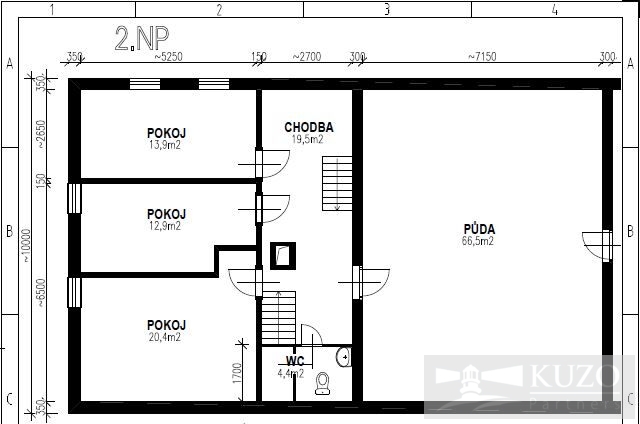 1. Patro - Ložnice 3x, Předpokoj - chodba, Toaleta, Vstup do půdních prostor
