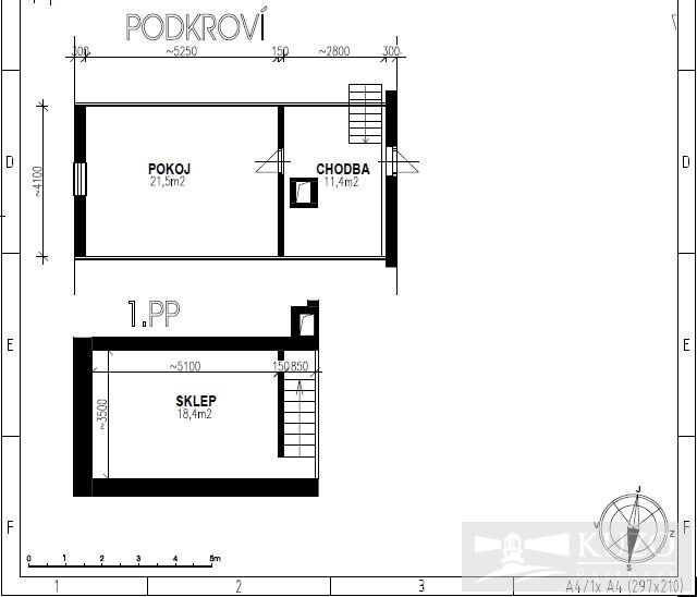2. Patro/podkroví - Ložnice 1x, Předpokoj - chodba