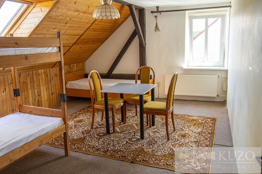 Interiér domu nabízí velkou kuchyni, kde se pohodlně uvaří pro celou rodinu, a v obývacím pokoji můžete ocenit kachlová kamna, která vytvářejí útulnou atmosféru. Celkem se zde nachází 5 ložnic, což poskytuje dostatek prostoru pro celou rodinu. Dům obsahuje 2 samostatné toalety a 1 koupelnu, což usnadňuje každodenní rutinu s dětmi.