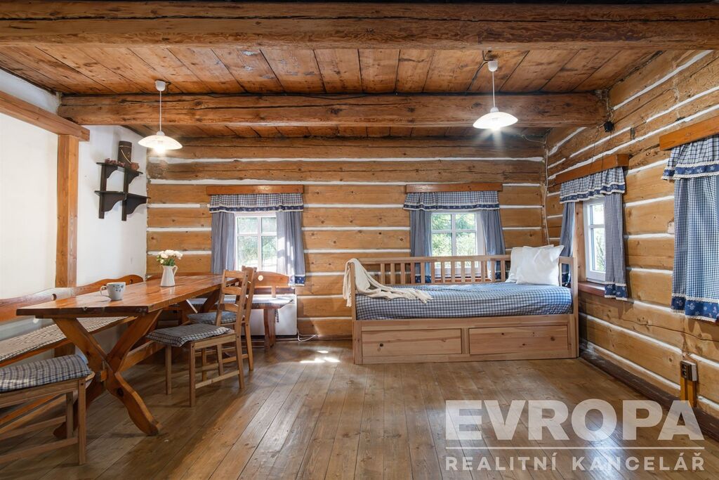 • Přízemí: prostorná vstupní chodba, společenská místnost/světnice s kuchyňským koutem a krbovými kamny, dvě ložnice, koupelna s WC. K domu přistavena sauna se sprchovým koutem.