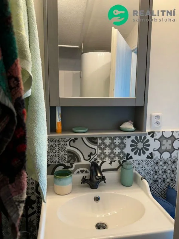 Vytápění a ohřev vody elektřinou (bojler, elektrokotel; plyn v obci není). Dům má zděný komín, po revizi lze využívat k topení.