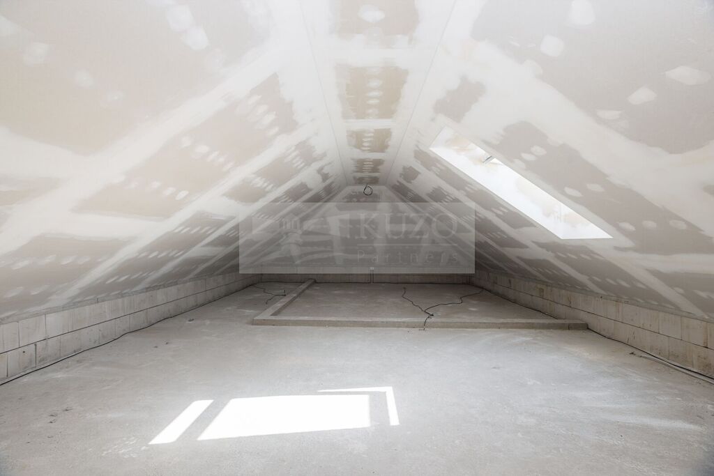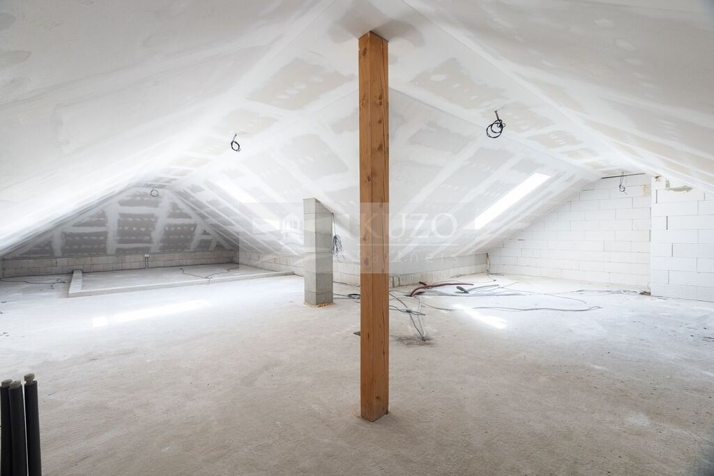 Pokud jde o sto patnácti metrový půdní prostor, ten zatím čeká na jeho budoucí využití. Díky monolitické stropní konstrukci se zde nabízí hned několik využití (pracovna, ateliér či saunu s posilovnou a podobně)