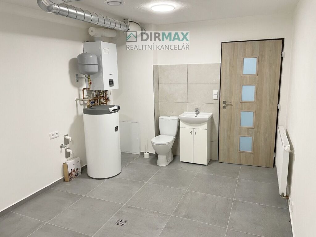 V této velké místnosti je toaleta, umyvadlo, přípojky na pračku a sušičku a prostor na umístění případné sauny i vířivky. Je provedeno odvětrání, vzduchotechnika. Je tady také vlastní vodoměr, který je umístěn přímo v domě, nikoliv venku v šachtě.