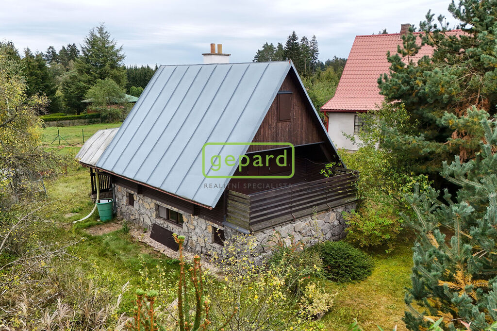 Vybavení: Chata je připojena na vodovodní řád a vybavena bojlerem na ohřev teplé vody, který je rozvedený i do kuchyně. Kromě kamen na tuhá paliva v přízemí a suterénu je zde také možnost napojení na plynovou lahev.