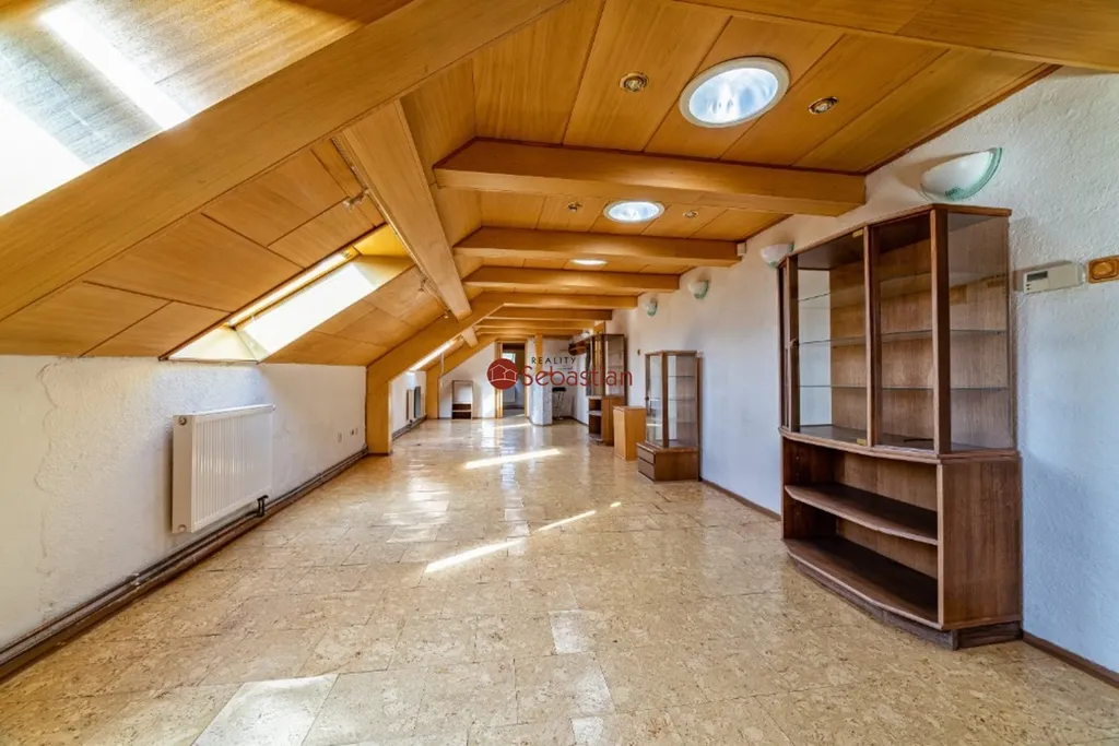 K pronájmu je připraveno 2. patro – podkroví o ploše 216 m². Prostory zahrnují vlastní kuchyň a koupelnu s WC. Majitel je ochoten provést potřebné úpravy podle požadavků nového nájemníka. Přízemí objektu je aktuálně využíváno knižním nakladatelstvím, první patro pak slouží jako kanceláře. Celý dům působí reprezentativním dojmem a poskytuje kvalitní zázemí.
