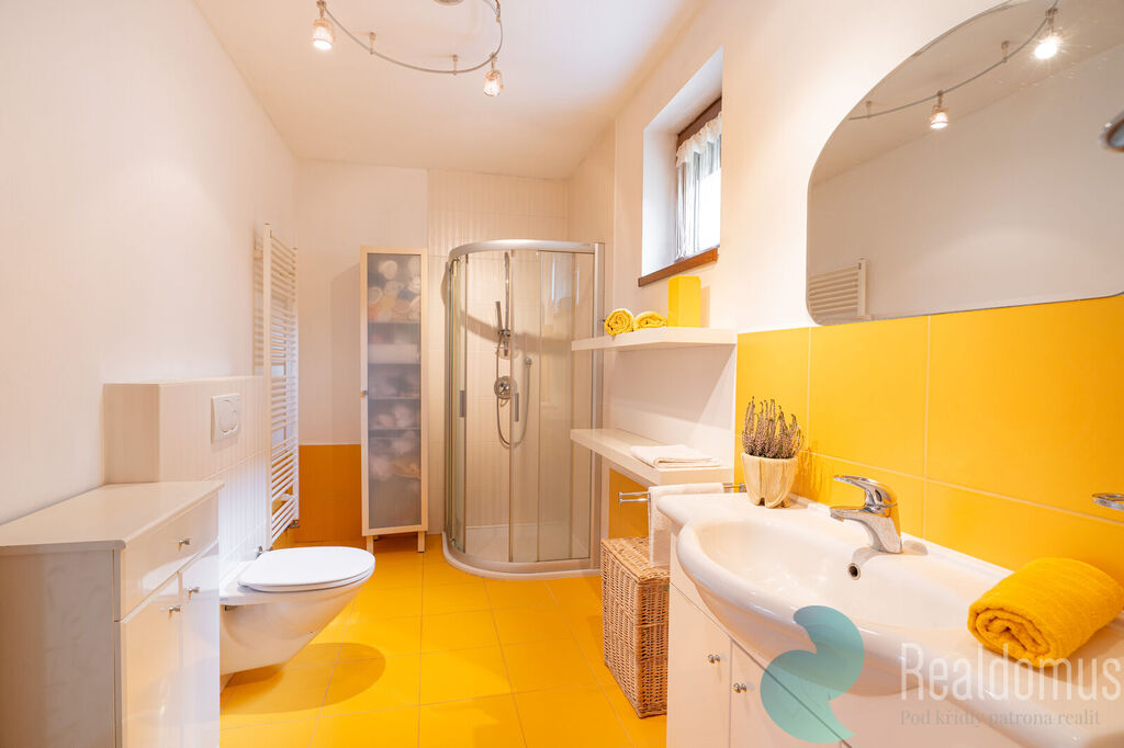 Dům je v současné chvíli rozdělen na 2 bytové jednotky. Hlavní bytová jednotka 3kk s velkorysou užitnou plochou 159 m2 se skládá z nádherné prosvětlené hlavní místnosti s kuchyňským koutem o rozloze 56 m2, dvou velkých ložnic (31 m2 a 27 m2), dvou koupelen (7 m2 a 6 m2) a technické místnosti. Druhá bytová jednotka 1kk má obytnou místnost s kuchyňským koutem (31 m2) a koupelnu 6 m2. Oba byty mají společnou chodbu a mohou být součástí jedné bytové jednotky, kdy jedna z ložnic bude mít vlastní koupenu s toaletou. Velký potenciál má toto dělení pro soužití více generací, či odrostlejší děti, které mohou mít v domě své samostatné zázemí.