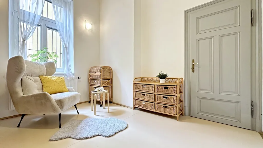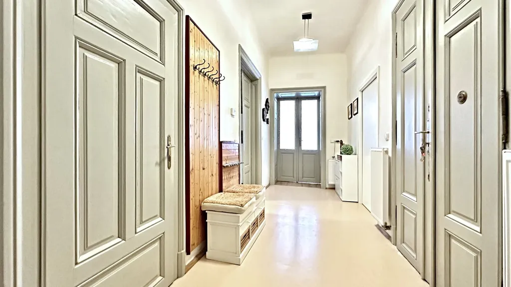 Zajímavou skutečností je pak také možnost zhodnotit byt v průběhu plánované rekonstrukce domu zbudováním vlastní terasy a vstupu na ni v uzavřeném vnitrobloku s krásnými vzrostlými stromy.
