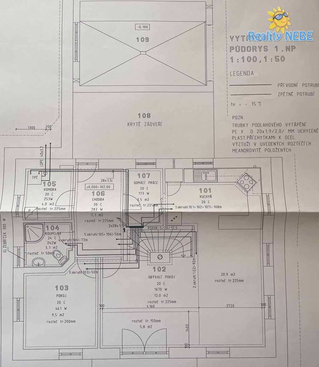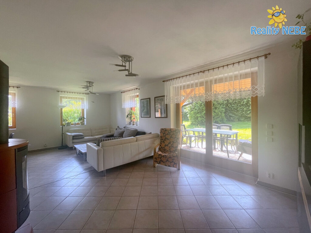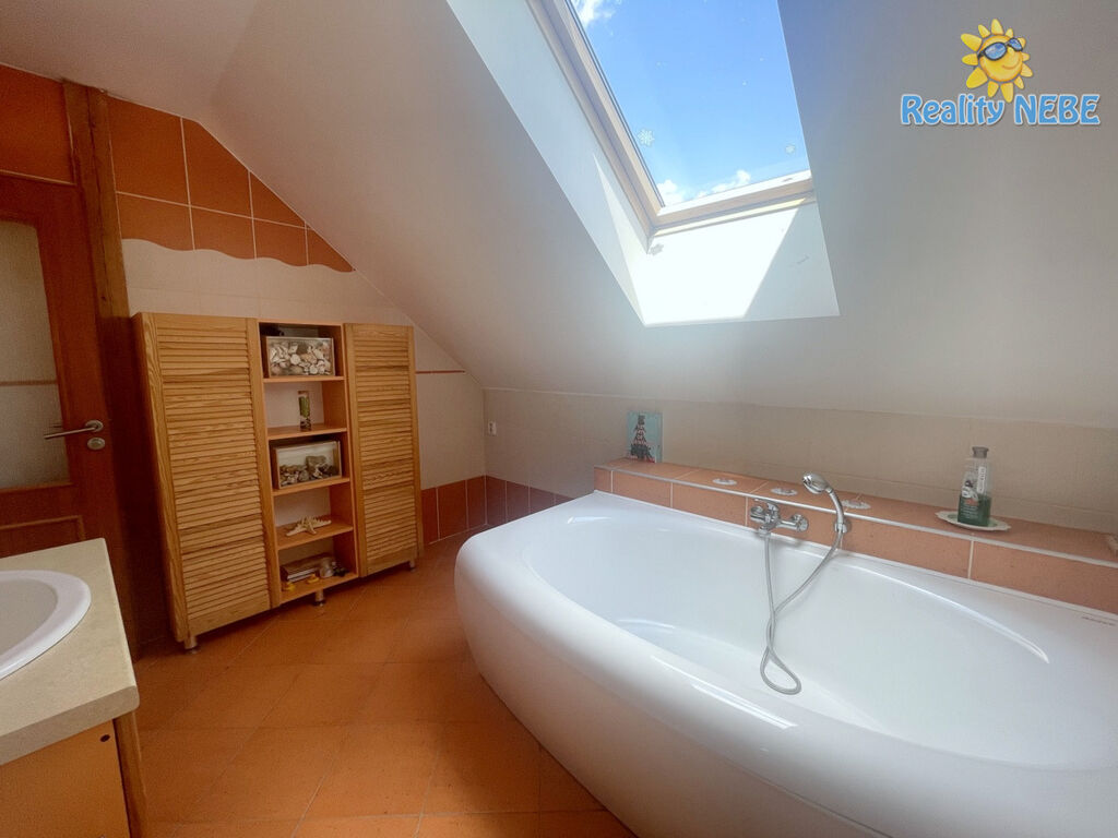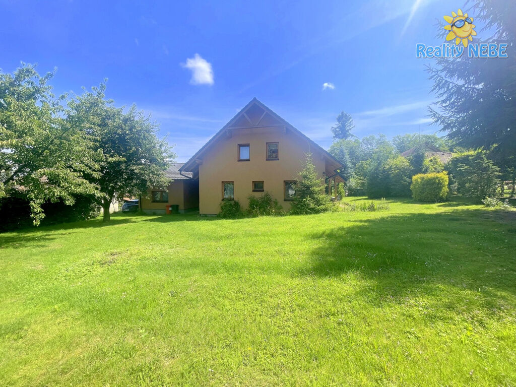 Prostorná kuchyňská linka s kuchyňským ostrůvkem, vestavné spotřebiče, místo na lednici, myčka, indukční varná el. deska, digestoř, umyvadlo s výhledem do zahrady. Jídelní stůl společně s krbovými kamny propojuje obývací část k odpočinku celé rodiny. Výstupem na terasu jste v kontaktu s klidnou zahradou. Dům je napojen na veřejné rozvody elektro. Podlahové vytápění tepelným čerpadlem, nebo můžete vytápět i krbem. Přípojka na vodu, nebo ji můžete čerpat z vlastní vrtané studny, dům má vlastní ČOV. Chcete-li bydlet v romantickém kraji obklopen lesy a přitom zůstat nadosah, zvolte prohlídku tohoto domu. Těšíme se na vás. Další foto i půdorys přímo na našich stránkách.