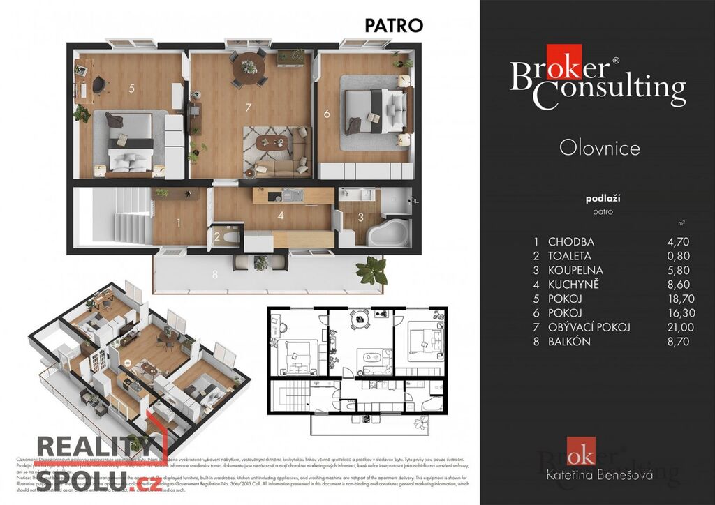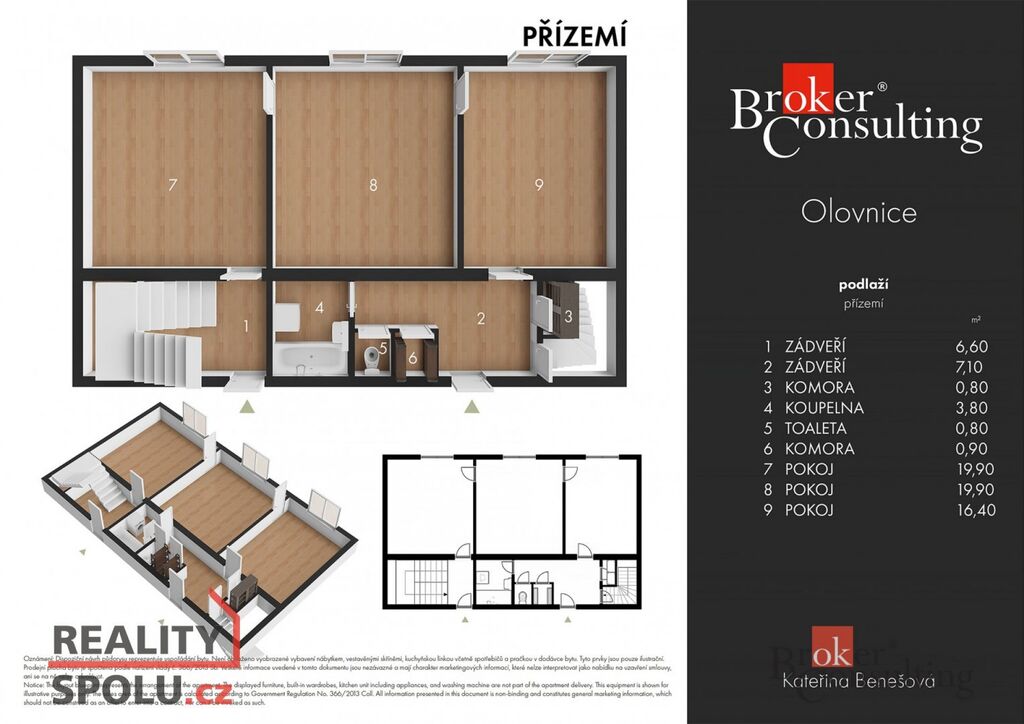 Dispozičně je dům řešený jako 2+1 v přízemí a 3+1 v patře, s prostorným balkonem orientovaným do dvora. Obě bytové jednotky je možné propojit nebo oddělit (včetně samostatného vchodu pro každou bytovou jednotku zvlášť). Všechny pokoje jsou velmi světlé, orientované na jih. V domě je mnoho úložných prostor.