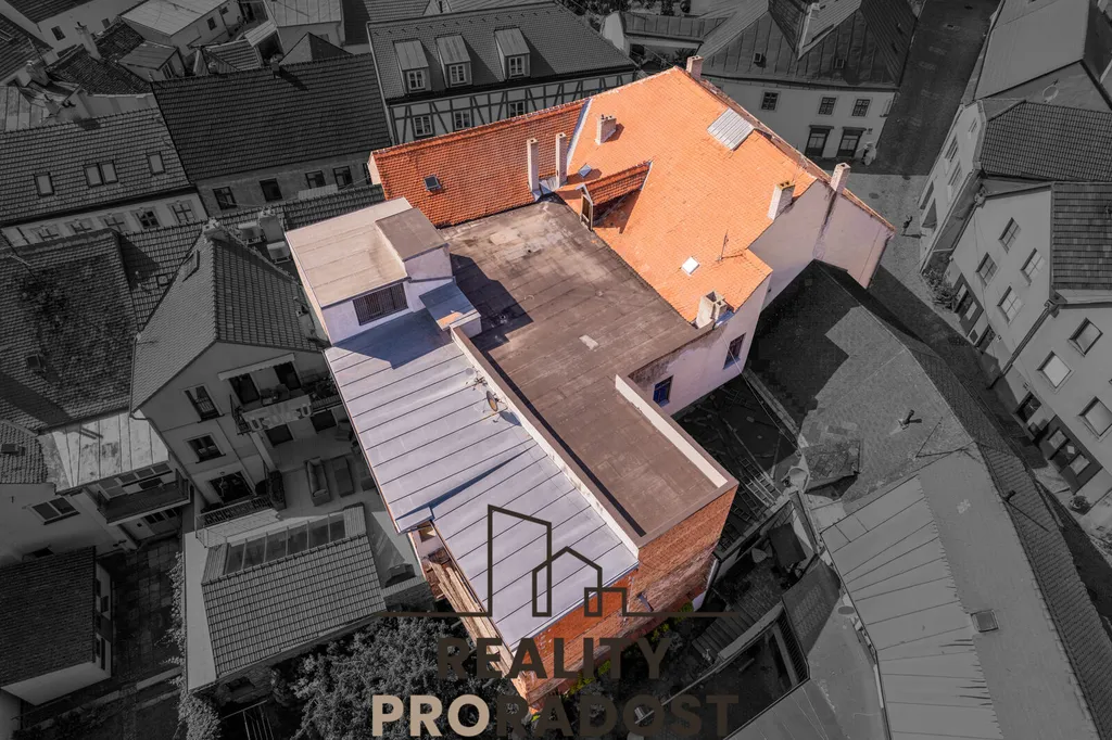 Rovná střecha budovy nabízí další velký potenciál k vybudování nádherného panoramatického apartmánu nebo bytu s výhledem na Znojmo.