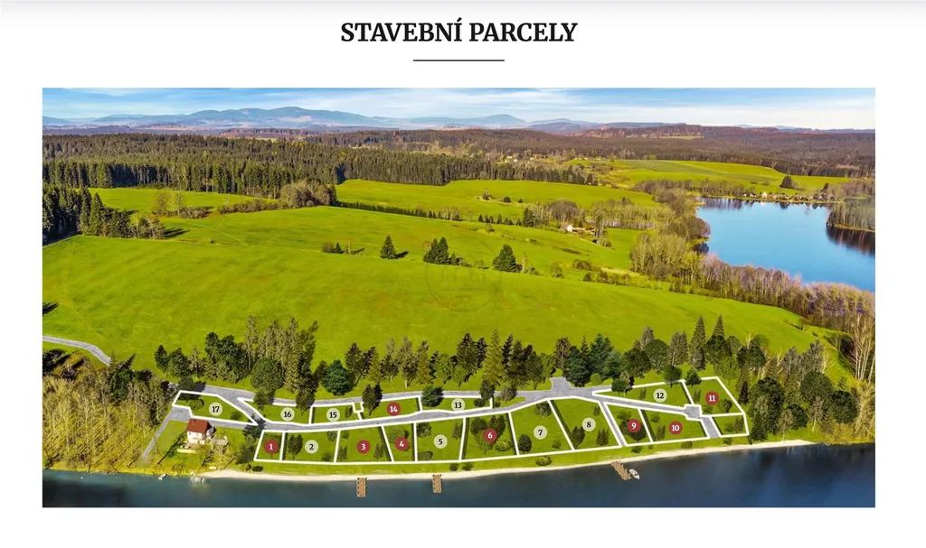 Představujeme tento exkluzivní stavební pozemek č. 15 ve druhé řadě, přímo u břehu Lipna v lokalitě Frymburské pole.