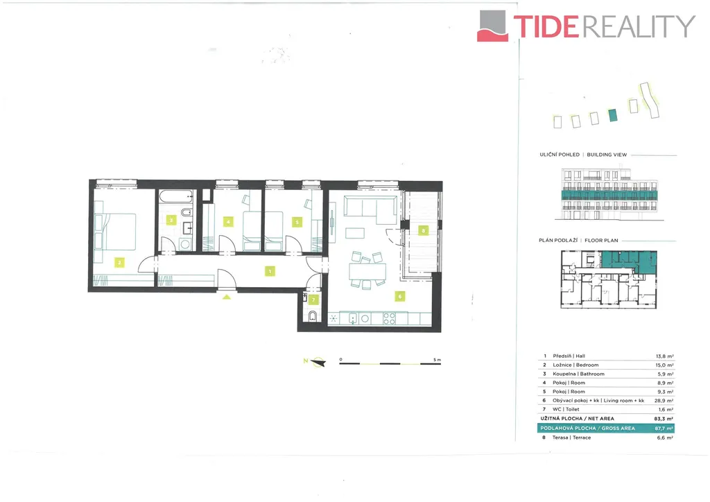 Rodinný byt s velmi příjemnou jihovýchodní orientací o podlahové ploše 83 m2 s terasou 6.6m2, se nachází ve 3.NP komorního pětipodlažního domu (14 bytových jednotek) v rámci probíhající výstavby bytového projektu, který se bude nacházet na nároží ulic Na Máchovně a Na Morákově. V současné chvíli u něj ještě můžete zvolit mezi variantami dispozice 4+kk nebo 3+kk.